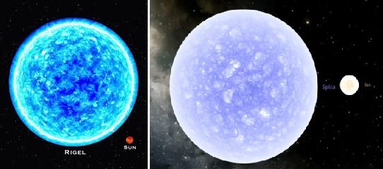 B tayf yıldızlara örnek vermek gerekirse, Avcı takımyıldızındaki Rigel bu sınıfa giren ünlü yıldızlardan biridir. Rigel, gökyüzünde son derece parlak görünmesiyle dikkat çeker ve yüksek kütlesiyle B tayf yıldızların tipik özelliklerini yansıtır. Benzer şekilde Spica da B tayf yıldızlar arasında yer alır ve mavi-beyaz ışığıyla gökyüzünde kolayca ayırt edilir. Bu tür yıldızlar, genellikle genç yıldız kümeleri içinde bulunur.